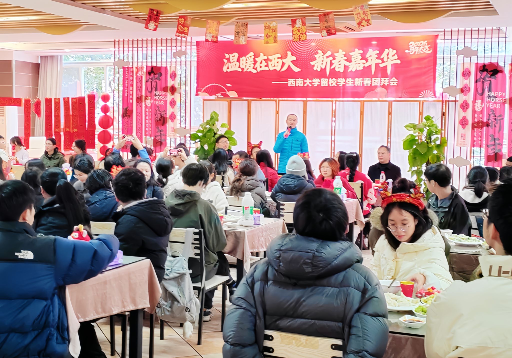 3月3日是农历元宵节。虽已开学,但未出正月,膳食服务中心各食堂提前备好汤圆,免费送给返校师生,让他们在校园里依然能续上春节的温度。清晨,后厨已经忙开了。和面、调馅、搓圆……师傅们赶在就餐时间前包好一颗颗汤圆。“这碗汤圆,是孩子们在学校这个‘家’吃的‘团圆饭’,得用心做。”一位师傅说。师生们接过热腾腾、软糯糯的汤圆,有的拍照留念,有的站在窗口就吃了起来。“这个元宵节的仪式感拉满了!一口下去,甜到了...