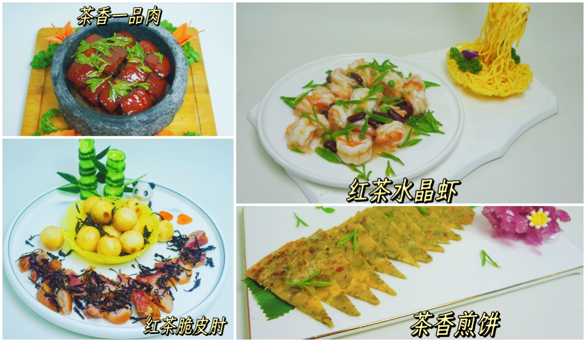 桂园宾馆厨政团队以“新厨融古韵、鲜食透茶香”为创作理念,通过茶香提鲜、桑韵增色的创新手法,赋予经典菜肴更多层次的风味。精选三线肉经高香红茶汤与传统卤水慢煨后高温酥炸,成就外脆里糯的“红茶脆皮肘”;东坡肉与缙云毛峰在陶罐中文火共煨,茶香浸透肌理,化作“茶香一品肉”的兰香雅韵。