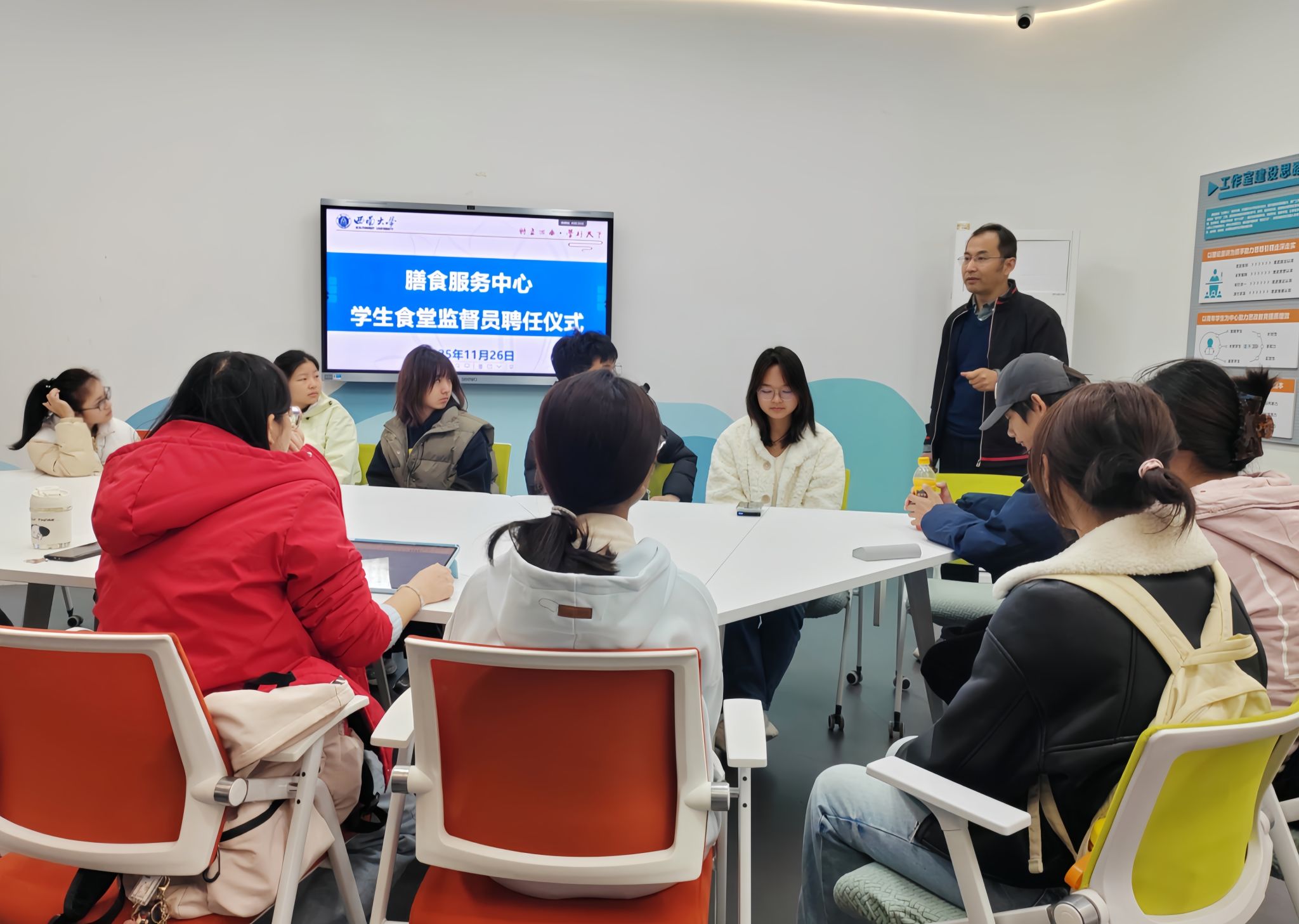 11月26日,膳食服务中心“学生食堂监督员”聘任仪式在青李空间举行。来自全校8个园区的16名同学正式受聘,将在未来一年内,以监督员身份深度参与食堂日常监督,协助中心守护师生餐饮安全,促进校园餐饮服务质量提升。