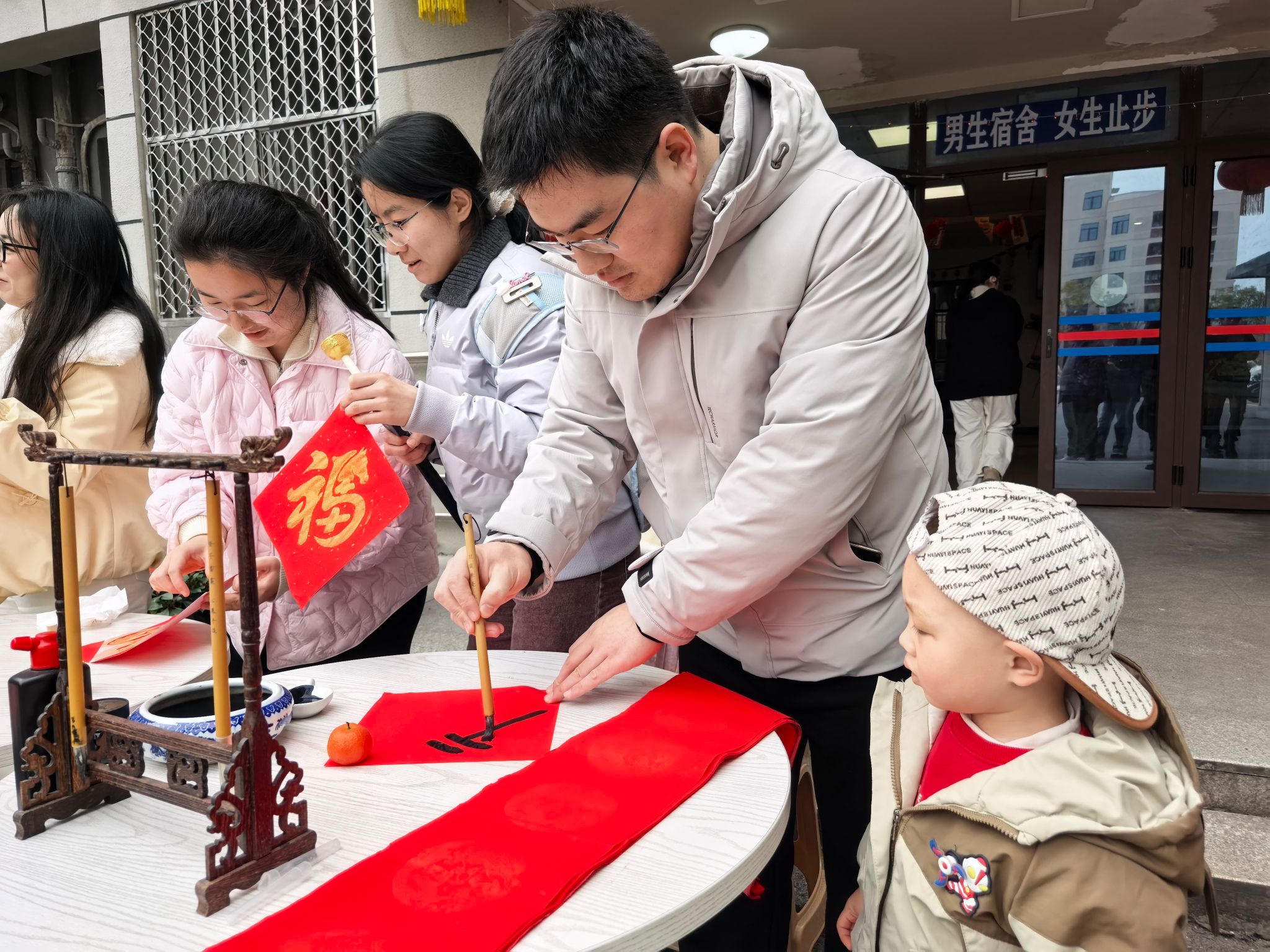 上午,宿舍值班大厅变身“年味体验区”,投壶、剪窗花、写“福”字……这些传统的年俗活动,让平日里简单的空间,忽然有了过年的仪式感。