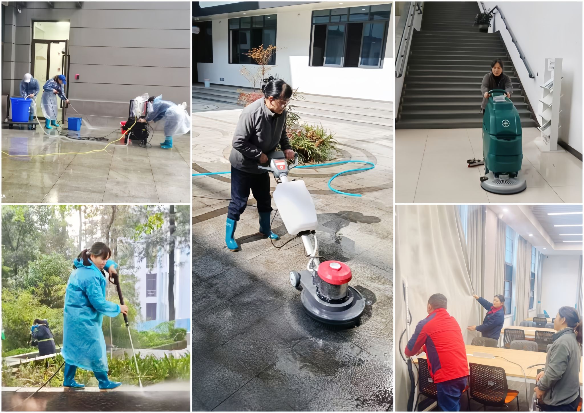 本次清理覆盖全校教学楼、实验楼及大型场馆。各班组成员对梯步、屋顶、玻璃、排水沟等区域进行精细化保洁,不留盲区、不留死角。针对外围落叶、大件杂物、顶楼天台、空调窗帘等专项任务,中心提前明确分工,配置专人负责,加大作业频率。