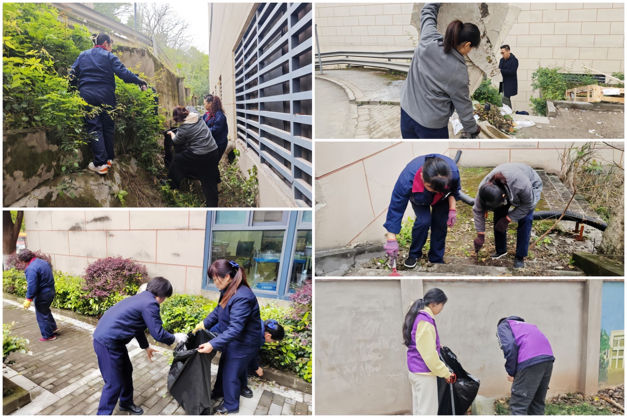 简短动员后,活动进入义务劳动环节。楼宇部部长对劳动区域、任务分工及注意事项作了说明,叮嘱大家规范使用工具。员工和学生混编成组,分头到档案馆后方和国旗台广场周边清理杂草、捡拾垃圾、清扫路面。一个多小时的劳动,让校园角落焕然一新,也让“明楼净宇”这四个字落到了实处。