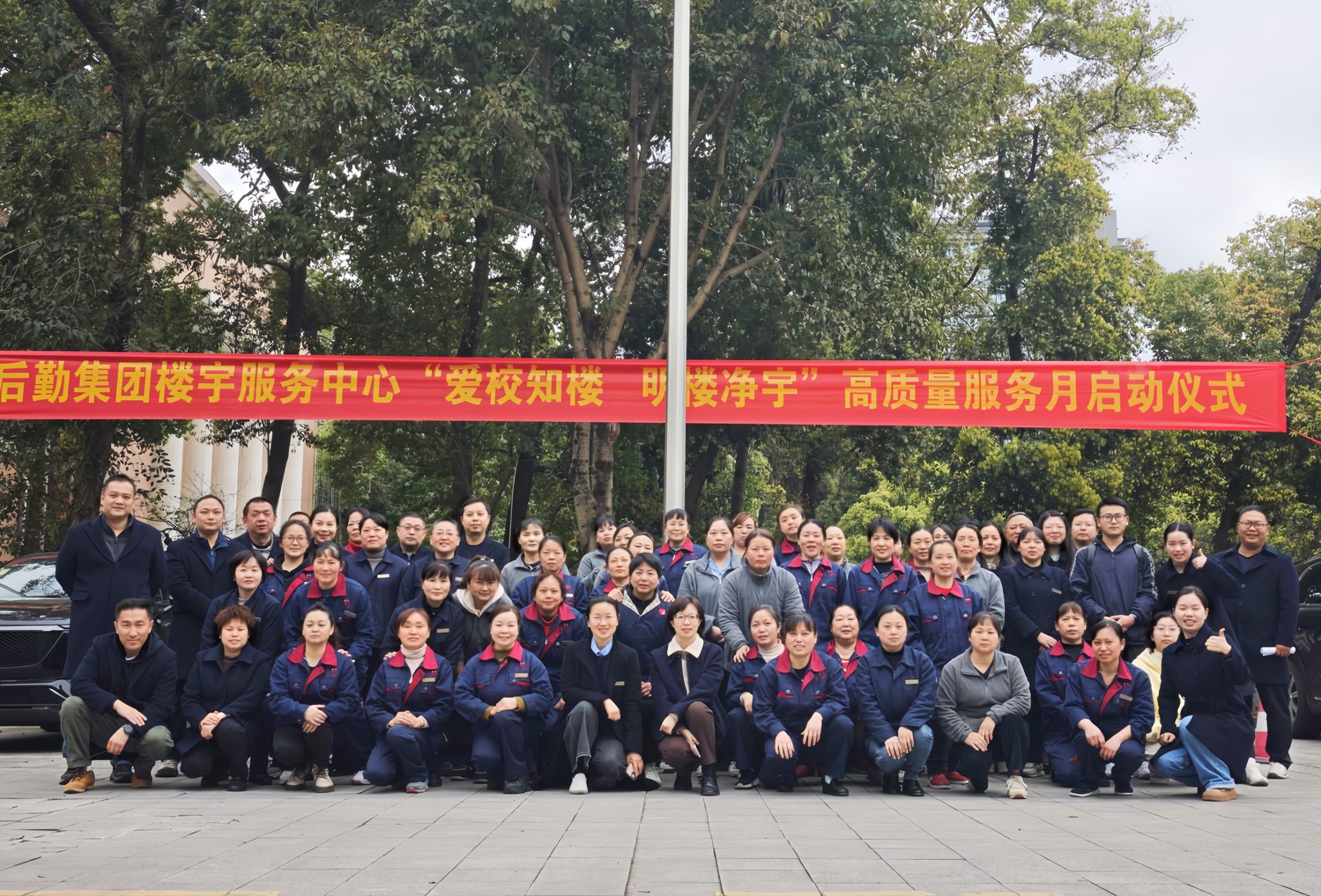 3月19日下午,楼宇服务中心“爱校知楼 明楼净宇”高质量服务月活动在国旗台广场启动。集团党委副书记、纪委书记、副总经理黄玉娟,全体管理人员、各班组骨干及勤工助学学生代表共70余人参加。活动由中心主任主持。
