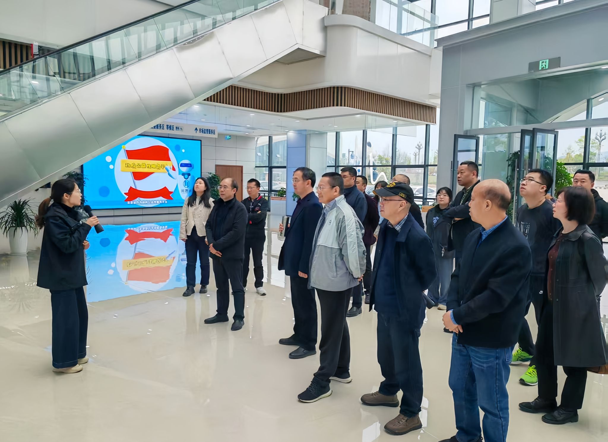 调研当天,学习组先后前往现代农业科技成果基地和新区政务服务中心。在现场,大家边走边看、边问边记,重点了解了新区在空间规划、跨区域协同治理、政务服务运行等方面的做法。政务服务中心的“跨省一窗通办”、跨区域事项的协同办理机制,让学习组印象深刻,这些做法背后,是不同行政主体之间流程的打通、标准的统一,对后勤部门优化跨业务协同、提高响应效率,有不少启发。