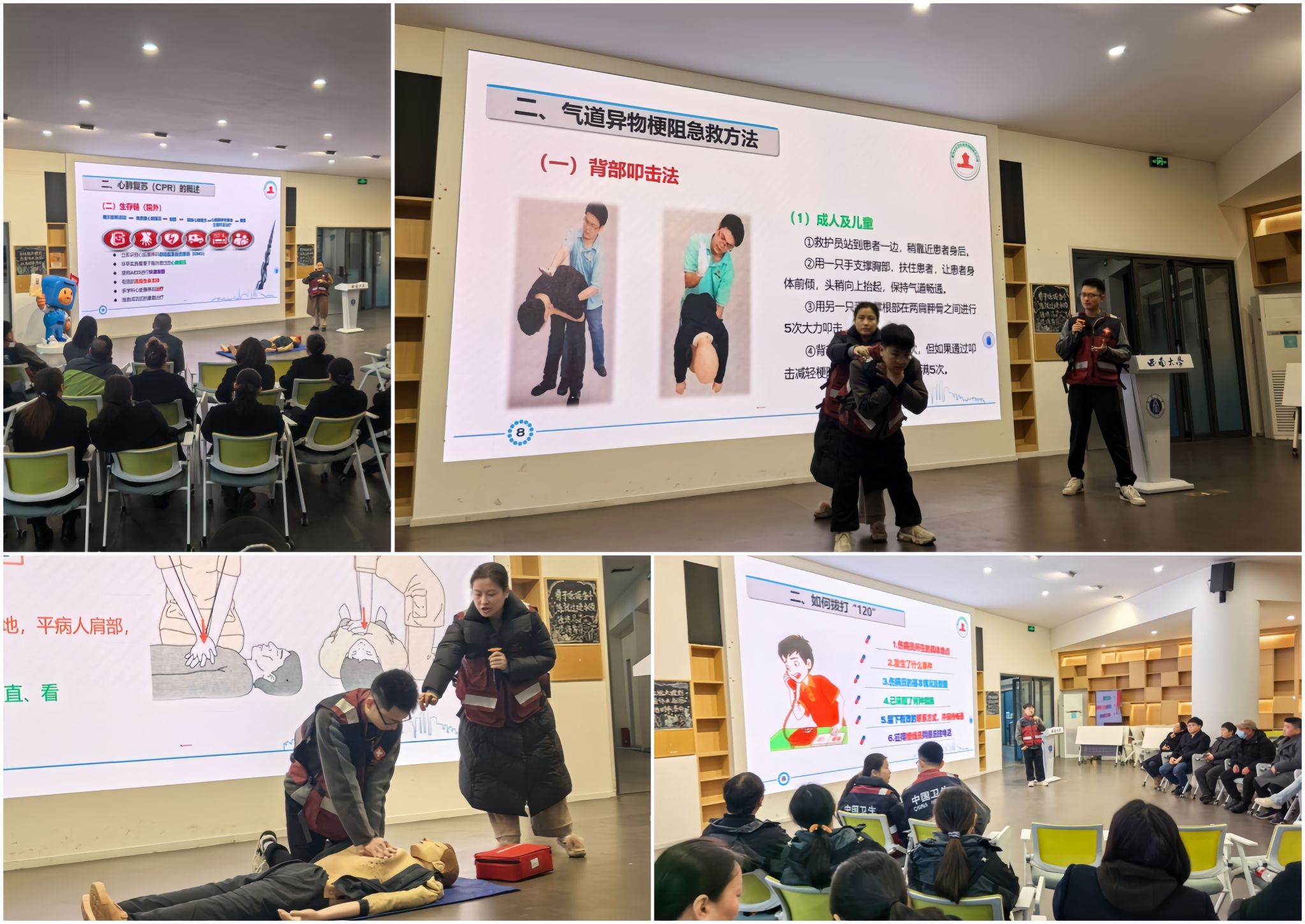 12月9日上午,学生宿舍服务中心在青李空间组织开展“健康守护·应急先行”公共卫生应急技能主题培训,旨在切实提升宿舍服务团队的应急处理能力,筑牢宿舍健康防线。中心管理人员、各楼栋值班员、保洁员、安全员等100余人参加培训。培训特邀校医院公众应急救护基地的专业讲师罗琳、李彬、孟源、敬保、杜骄芮进行现场讲授与指导。课程内容紧密贴合宿舍日常工作的实际需求,重点讲解了突发公共卫生事件的初步应对流程,并深入传授了...
