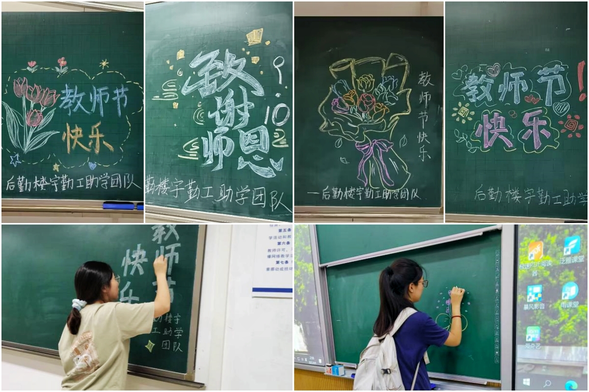 9月10日,第四十一个教师节之际,楼宇服务中心组织员工和勤工助学学生,用300余间教室的精美黑板画和温情祝福,为耕耘在教学一线的老师们送上了一场温暖的感恩告白。这场“告白”从9月9日傍晚便悄然启幕。楼宇服务中心的管理员们主动放弃休息,提前进驻各教学楼大厅布置节日海报。暖黄底色的海报上,眼镜、书本、向日葵等象征教师职业的元素错落排布,“路过时看一眼海报,突然就想起以前给老师写贺卡的模样。”有学生驻足感叹...