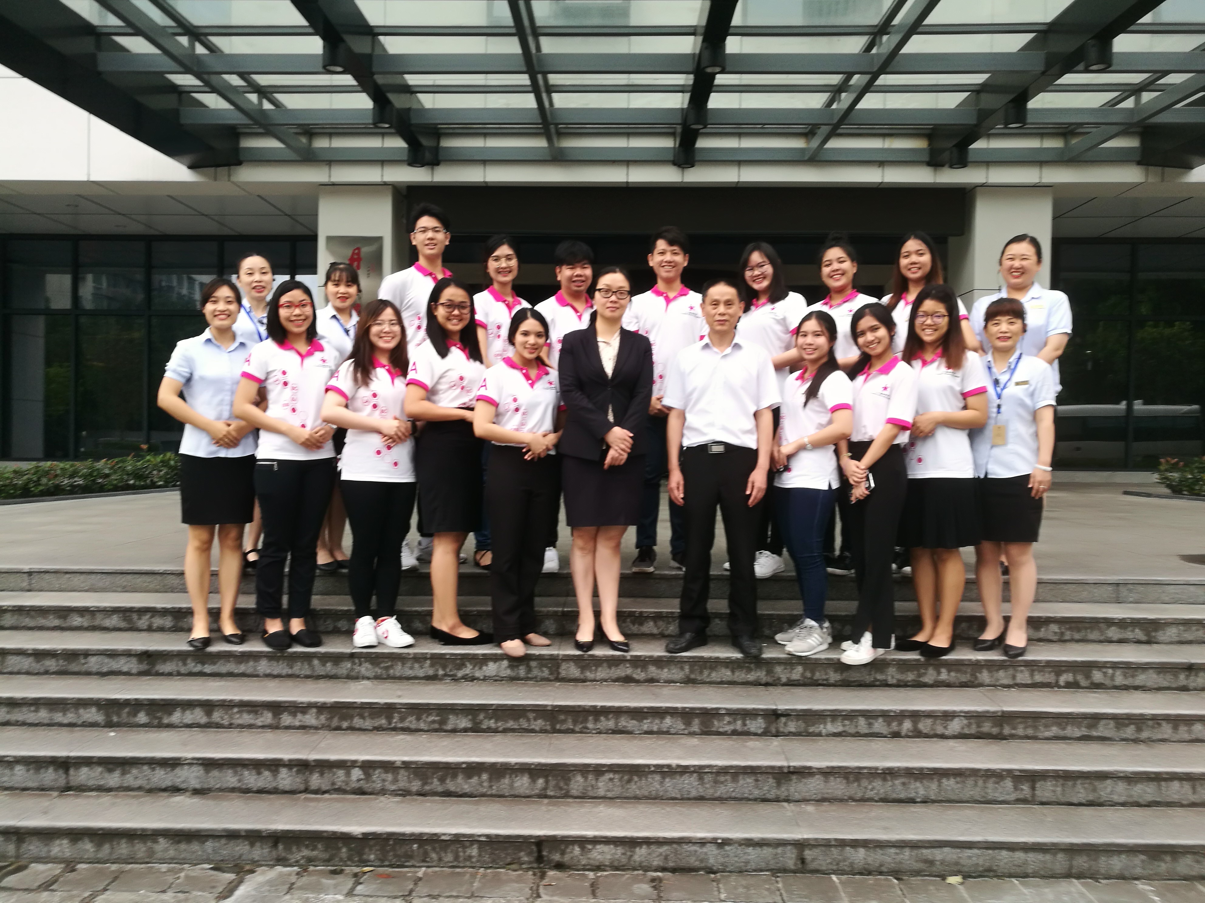 5月24日下午,桂园宾馆丹桂楼第13会议室,欢声笑语,气氛热烈,来自泰国正大管理学院的14名留学生在进行完“床旗花式折叠和开夜床”等客房实作培训后,与培训老师们依依不舍,合影话别。