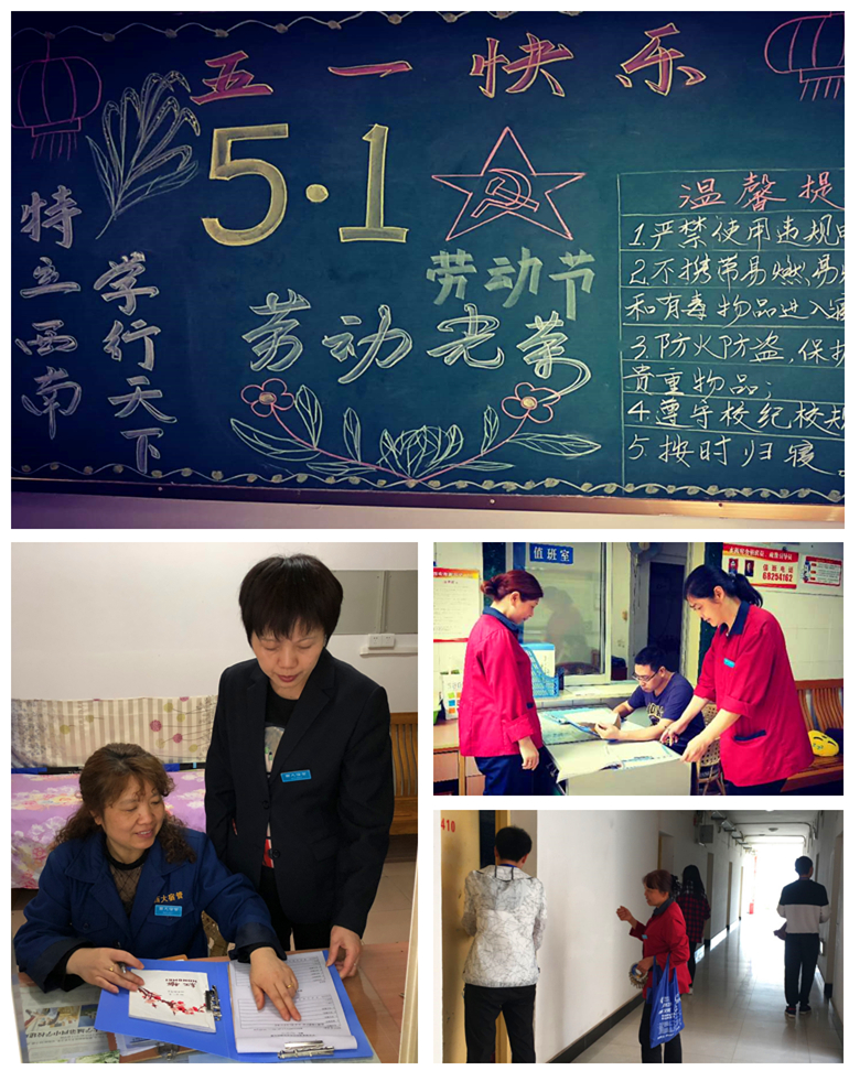 4月28日,各个片区学生宿舍开展节前安全检查,对值班室、电房、学生社团用房等进行安全自查,针对安全隐患进行提醒和整改,通过宿舍黑板报或是学生宿舍微信群做好安全提醒等。
