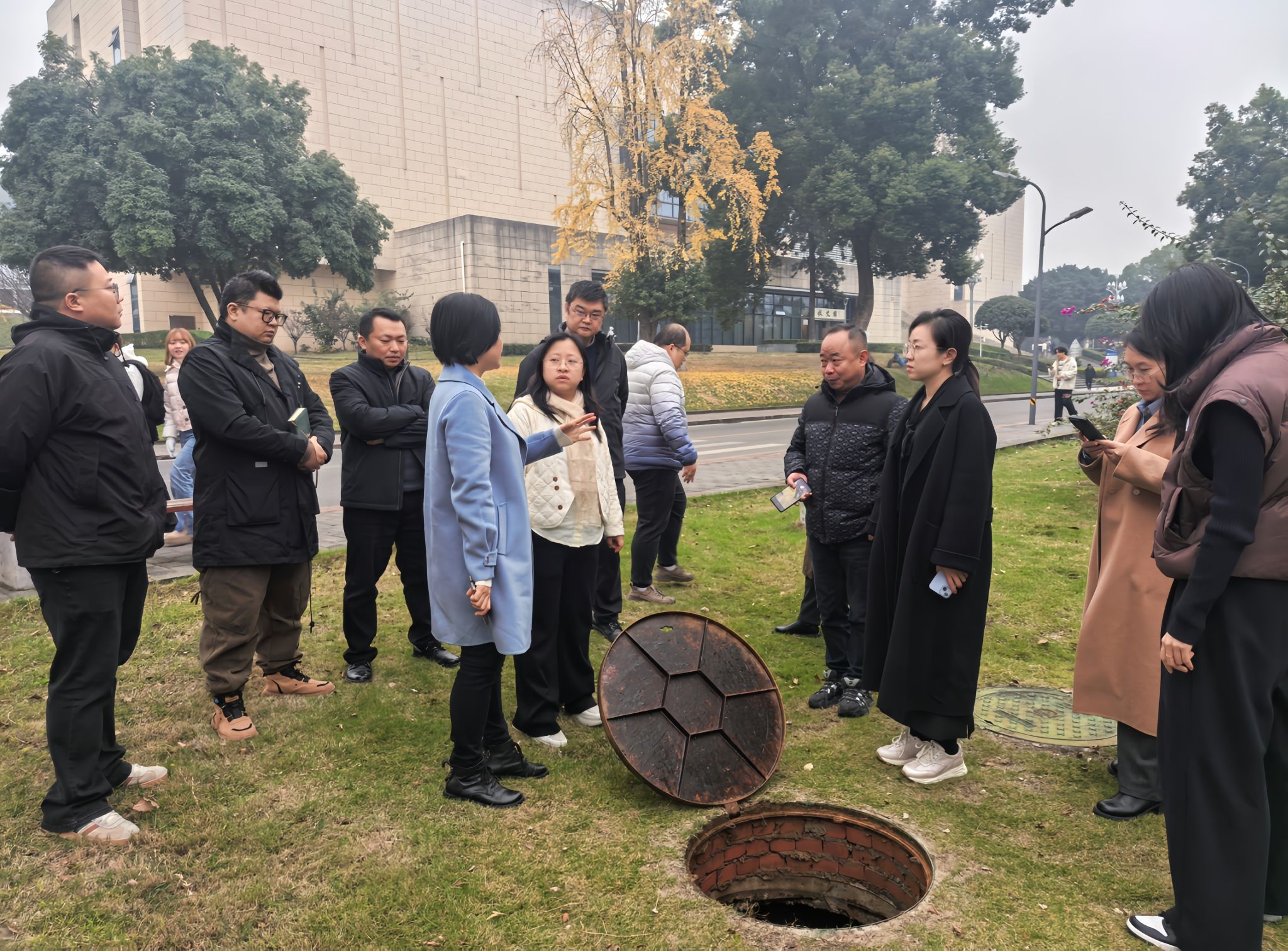 听取汇报后,调研组与学校工作人员进行了深入交流。重庆市节约用水办公室干部熊燃解读了节水型高校申报的最新政策;北碚区水利局副局长李波针对雨水利用、循环用水及合规取水等项目申报提供了具体指导;市节水办副主任毛阳春结合重庆市高校合同节水的主要模式与地方典型案例,建议学校进一步加强对标交流、互学互鉴。