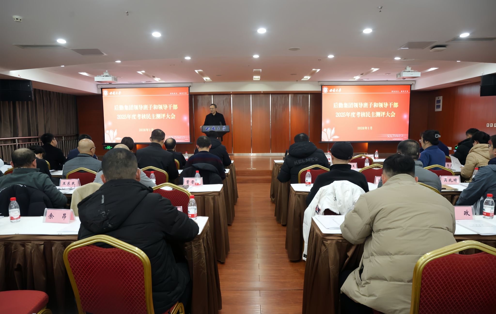 1月12日,后勤集团召开领导班子和领导干部2025年度考核民主测评大会,全面总结年度工作并开展现场测评。学校助学中心主任孙金春、校纪委监督检查室副主任马驰出席指导,集团110余名职工参加会议。会议由集团党委书记李建光主持。